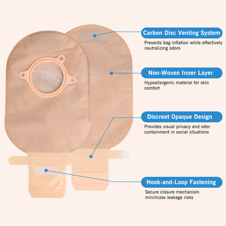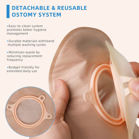 - 【Detachable & Reusable Two-Piece System】Adopt a separated "flange + pouch" design, where the flange can be reused for an extended period. Only the pouch needs to be replaced daily as needed, reducing the monthly replacement frequency by 60% compared to traditional one-piece ostomy pouches, making it highly cost-effective for long-term use. Its detachable combination forms an easy-to-clean system, which helps better manage hygiene.